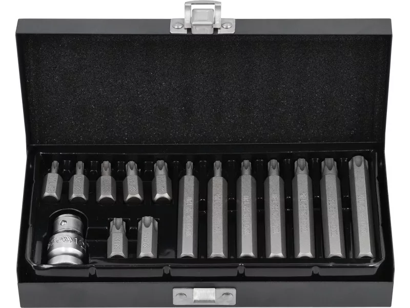 Set of 15 professional torx screwdriver bits.