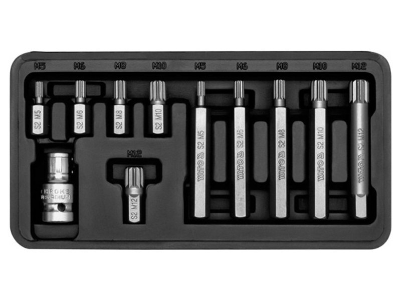 YATO Bit-Set 11-teilig SPLINE M5-M12 L=30 mm, L=75 mm 1/2"