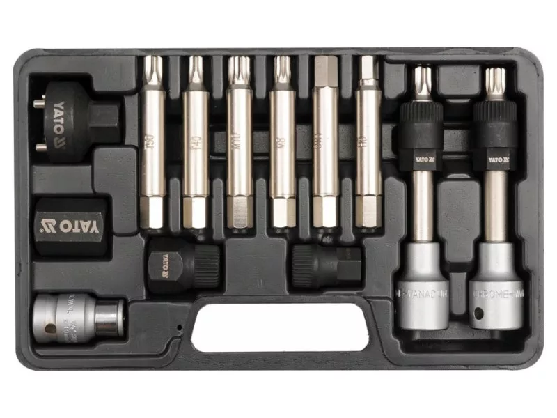 A professional set of keys for mounting and dismantling alternators type Bosch and Magneti Marelli. Marek adapted to cars: Audi, BMW, Fiat, Ford, Mercedes, Opel, Porsche, Renault, Peugeot, Seat, Skoda, Volvo, VW and others. The keys allow you to simultaneously unscrew the pulley fastening screw (using the appropriate bit) and holding the wheel with a clutch (using a specialized attachment).