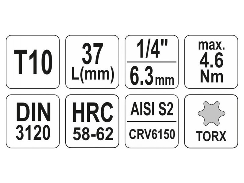 Professional Torx pushes, 1/4 "cap size, t10 size. Chrome cap made of CRV6150 steel, aisi S2 steel and nickel -covered. An irreplaceable tool in a car or mechanical workshop.