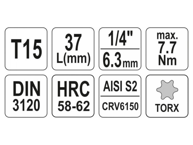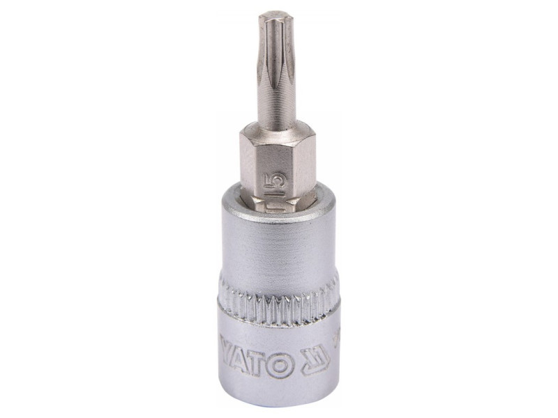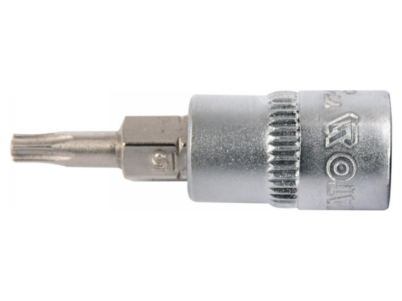 Professional Torx thoroughbage key, 1/4 "attachment, T15 size. Chrome cap made of CRV6150 steel, Aisi S2 steel mandrel and covered with a layer of nickel. An irreplaceable tool in a car or mechanical workshop.