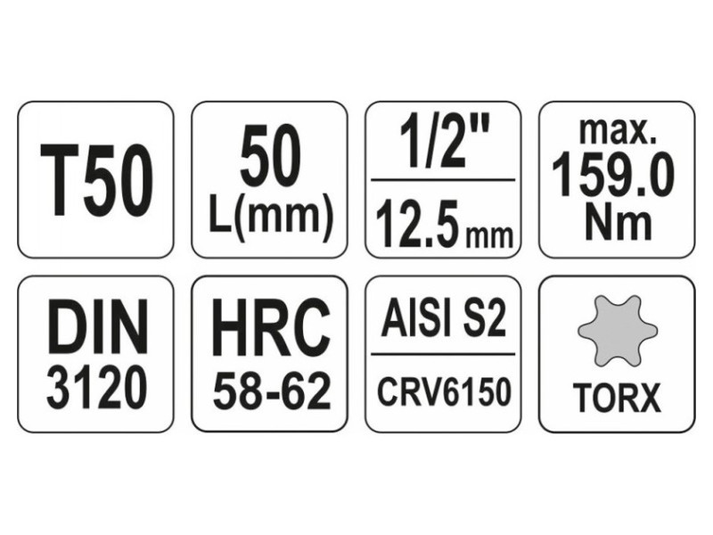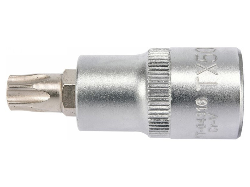 Professional Torx pushes, 1/2 "cap size, T50 size. Chrome -shaped cap made of CRV6150 steel, aisi S2 steel mandrel and covered with a layer of nickel. An irreplaceable tool in a car or mechanical workshop.