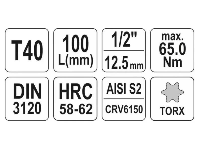 | Torx tip size | T40 |