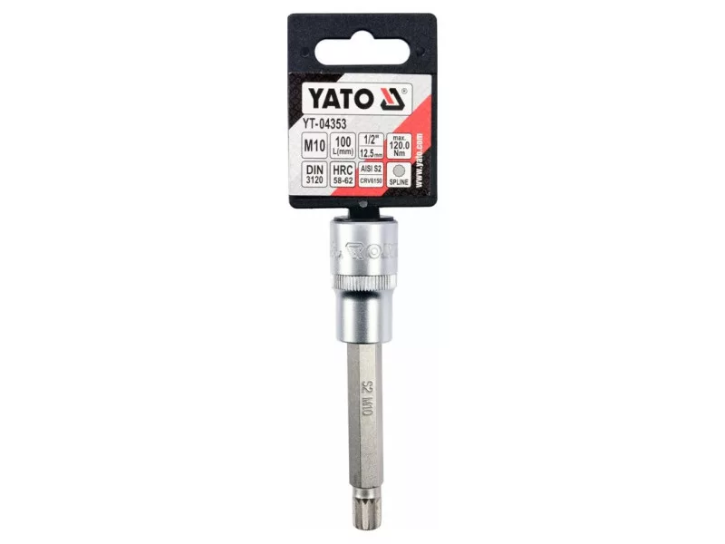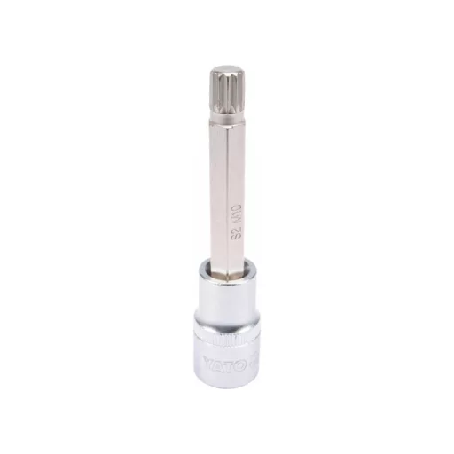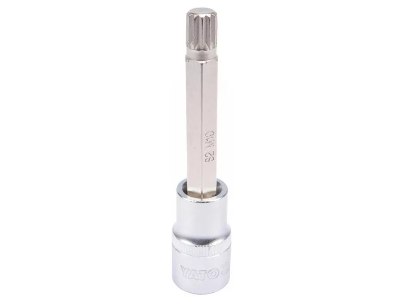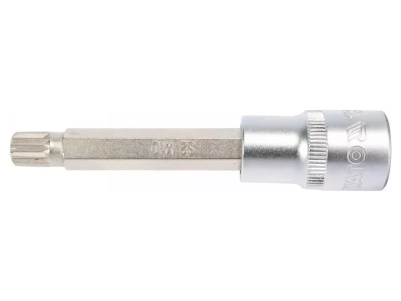 Professional SPLINE SPLINE, SIZE SIZE 1/2 ", MOL SLEEP M10. Chrome cap made of CRV6150 steel, Aisi S2 steel mandrel and covered with a layer of nickel. An irreplaceable tool in a car or mechanical workshop.
