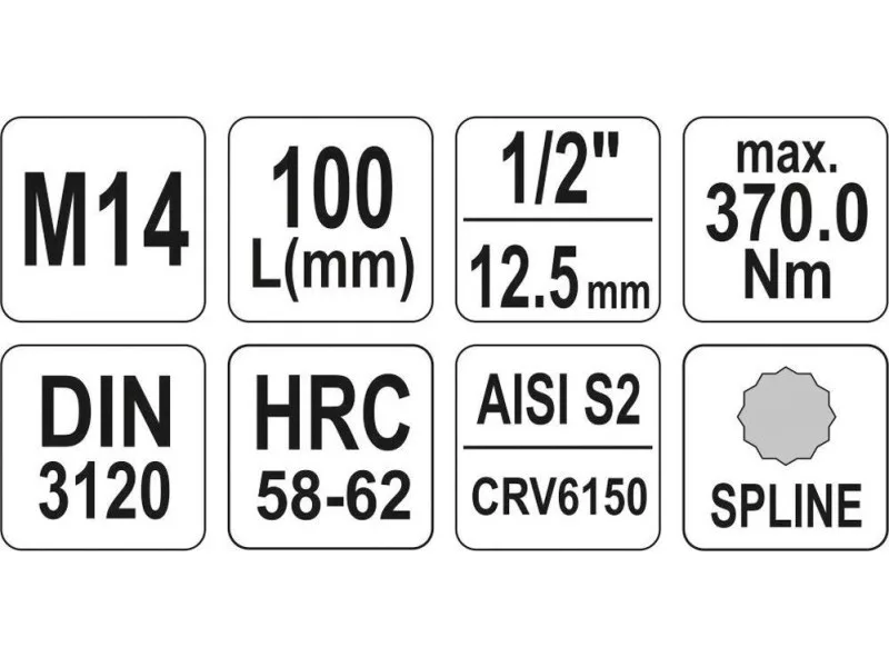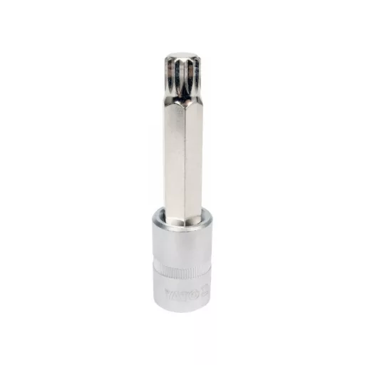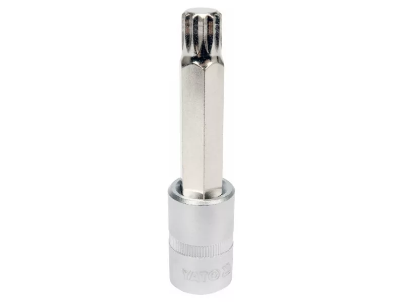 Professional SPLINE SPLINE, SIZE SIZE 1/2 ", MINE SIME M14. Chrome cap is made of CRV6150 steel, Aisi S2 steel mandrel and covered with a layer of nickel. An irreplaceable tool in a car or mechanical workshop.
