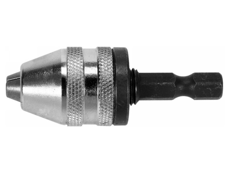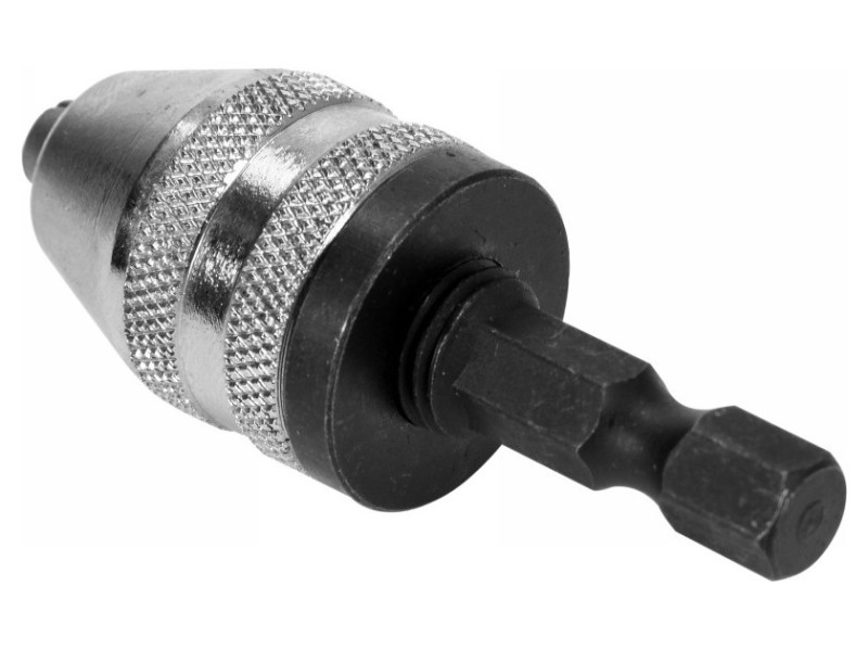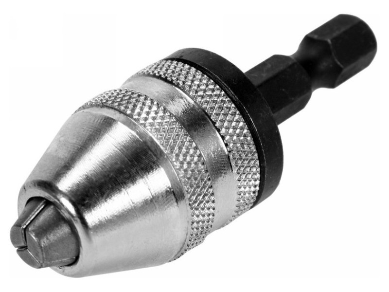 Keyless, quick-action drill chuck for screwdrivers with 1/4” hexagon socket.
