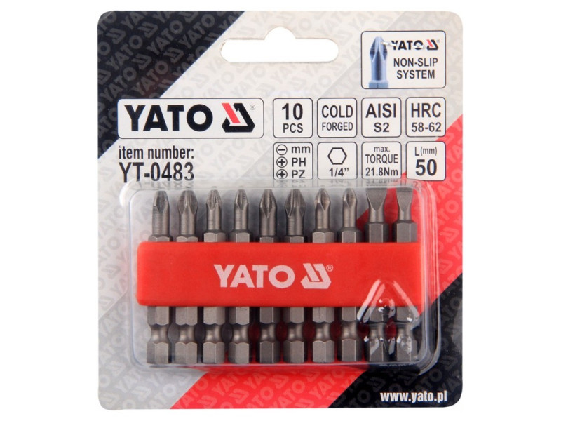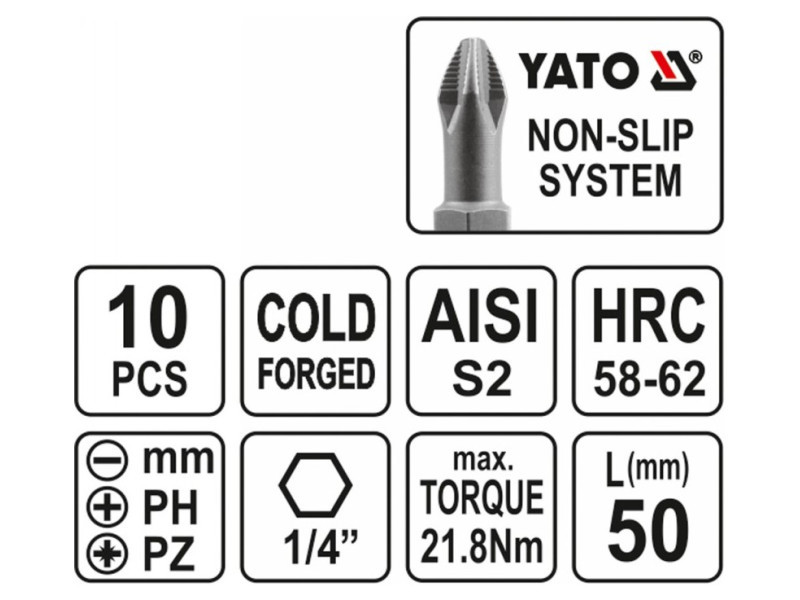 YATO Bitspitzen-Set 10 Stück 50 mm (5-6 mm-PH1-PH2-PZ1-PZ2)