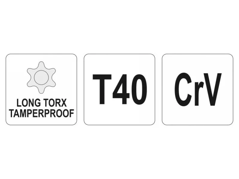 A durable bolt and screw key with Torx Security socket by YATO YT-05520. Used, among others in car workshops and services, and furniture. The hole drilled in the working tips allows for precise location of the key in the screw socket. Made of chrome-vanadium steel.
