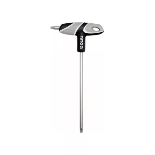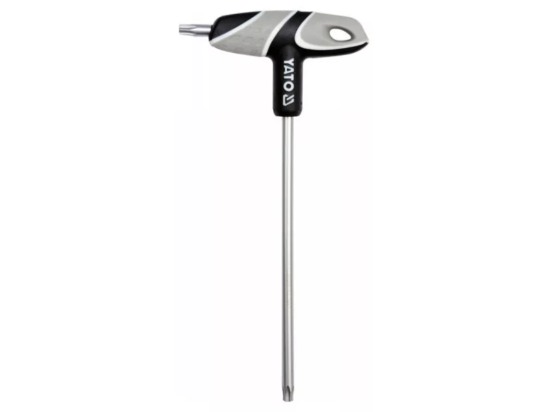 Professional Torx bound key with handle, T40 size size. A handy and solid plastic handle, while the mandrel is made of S2 steel. An irreplaceable tool in a car or mechanical workshop.
