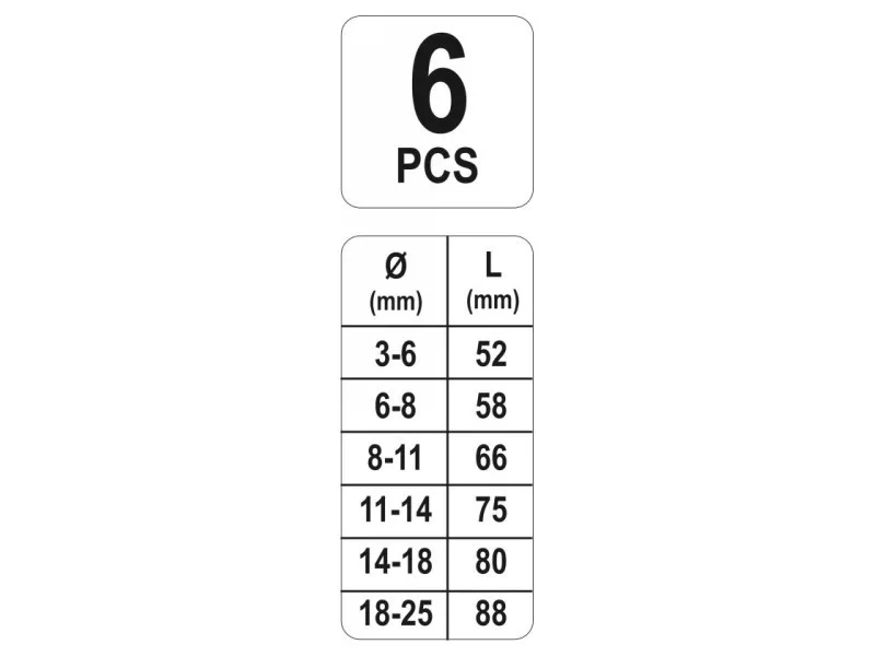 Diameter3-6, 6-8, 8-11, 11-14, 14-18, 18-25 mm