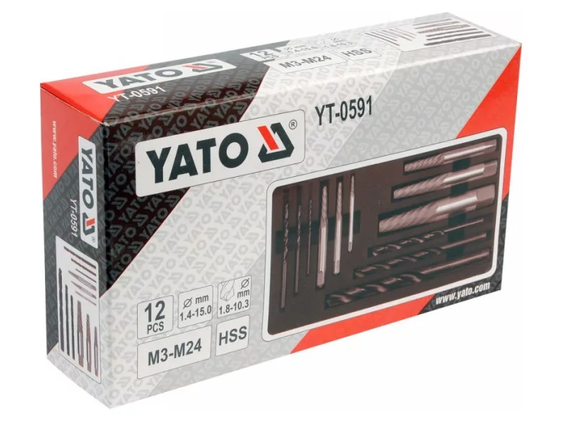 Screwdrivers for broken screws and HSS drills for metal, set 12 pieces by Yato.