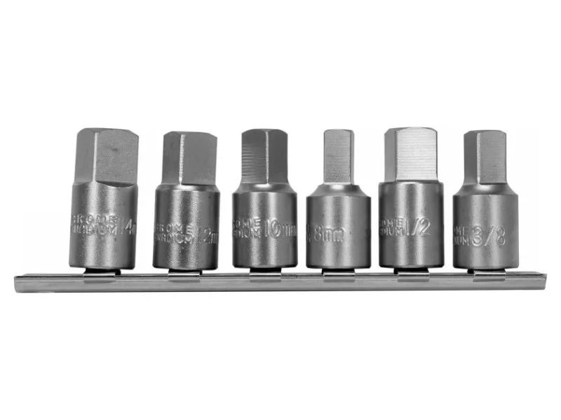 Set of 6 wrenches designed for unscrewing and tightening oil drain plugs in the oil pan.