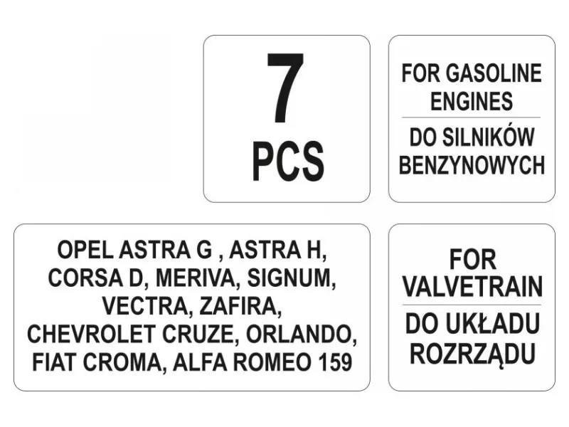 The professional timing lock set YT-06005 is the key to precise and safe servicing of gasoline engines. Indispensable in the service of popular car brands such as Opel, Chevrolet, Fiat, and Alfa Romeo.