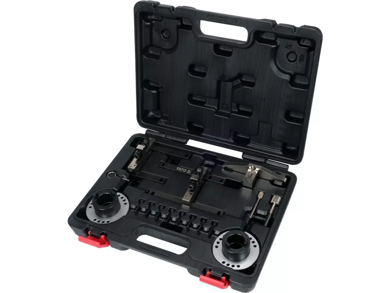 Set of timing locks for popular Ford EcoBoost engines. Includes the necessary tools for setting and locking, and for locating timing units.