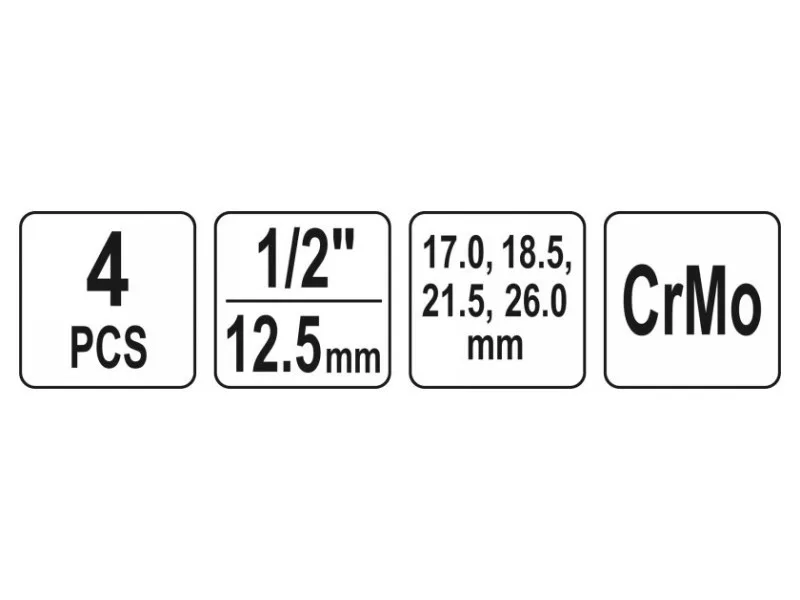 | Socket size | 17, 18.5, 21.5, 26 mm |