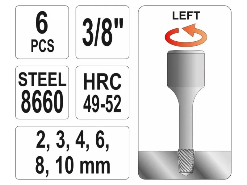 YATO Schraubenextraktionsset 6-teilig 3/8" M2-M10 YATO Schraubenextraktionsset 6-teilig 3/8" M2-M10