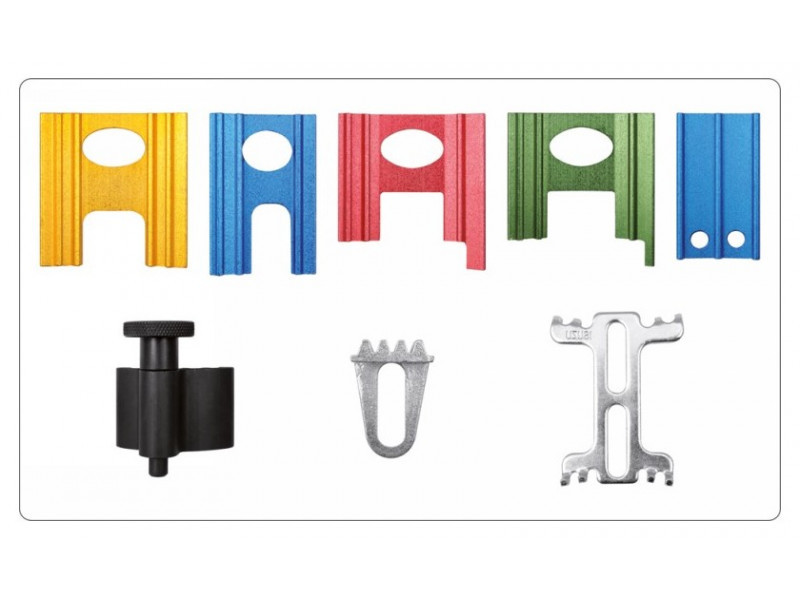 Set includescamshaft locking plate x5, block for blocking the crankshaft, flywheel lock x2