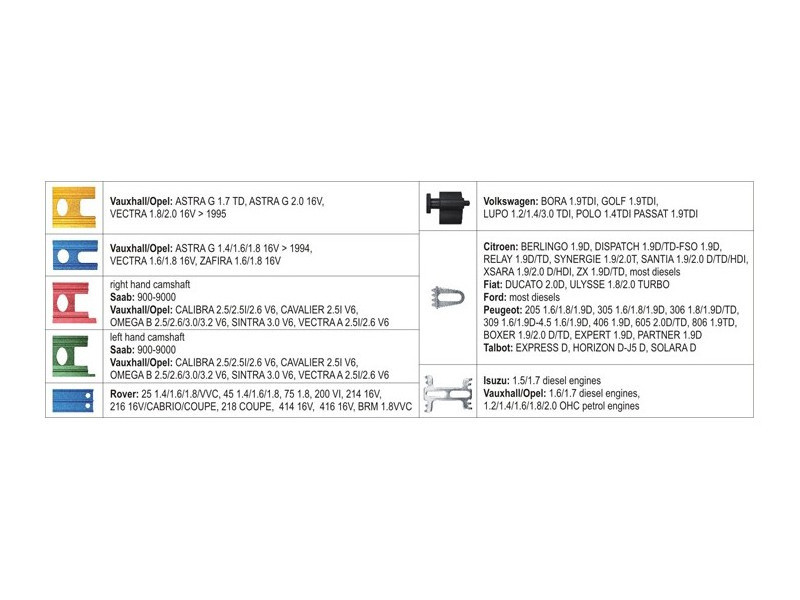• Designed for Opel, Saab, Rover, VW, Seat, Skoda, Ford, Fiat, Citroen, Peugeot, and Talbot engines