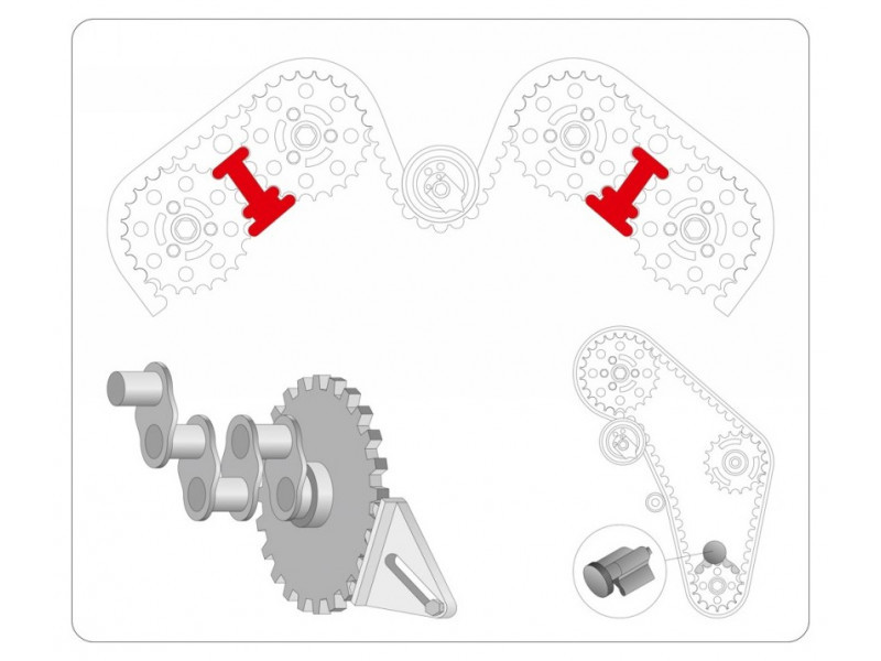The YT-0633 timing belt locking set is a professional tool that ensures precision and safety when servicing an engine. Ideal for demanding mechanics and specialized automotive services.