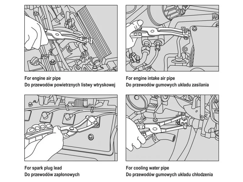 Applicationfor the air ducts of the injection rail, for rubber hoses of the power supply system, for ignition cables, for rubber hoses of the cooling system