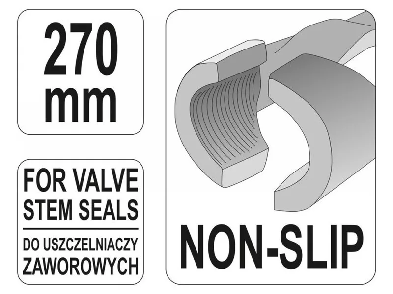 Long pliers for valve sealants. Jaws with Non Slip. Length 270 mm. For mounting and dismantling valve sealants in the engine head.