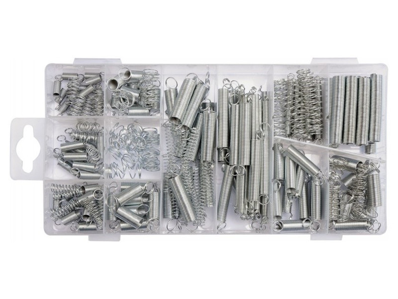 Spring set containing 200 different sizes. Springs working both for compressive and stretching. The whole is placed in a convenient "sorter" packaging.