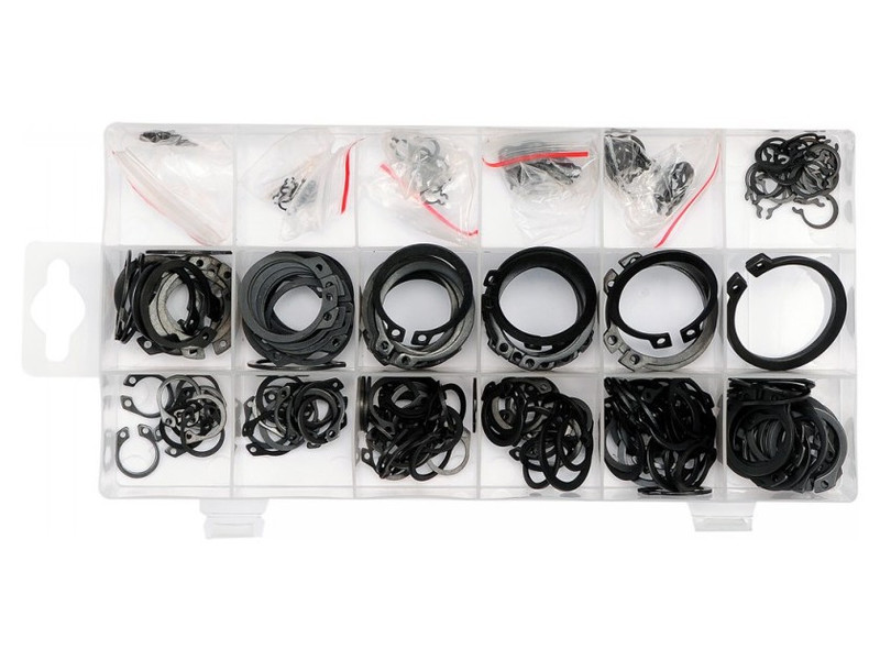 Professional set of 300 external seger rings. Contains a mix of 18 different sizes. All in a solid organizer. Irreplaceable in a car workshop, in agriculture and industry.