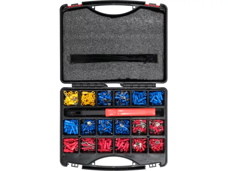 Improve your projects with the YT-068920 set! This professional crimping tool combined with a wide range of connectors and clamps ensures efficient work.