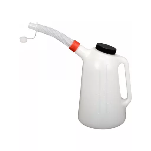 • made of durable PE plastic resistant to liquids it has a practical flexible funnel and screw-on lid
