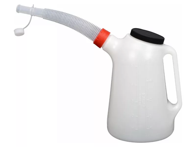 • made of durable PE plastic resistant to liquids it has a practical flexible funnel and screw-on lid
