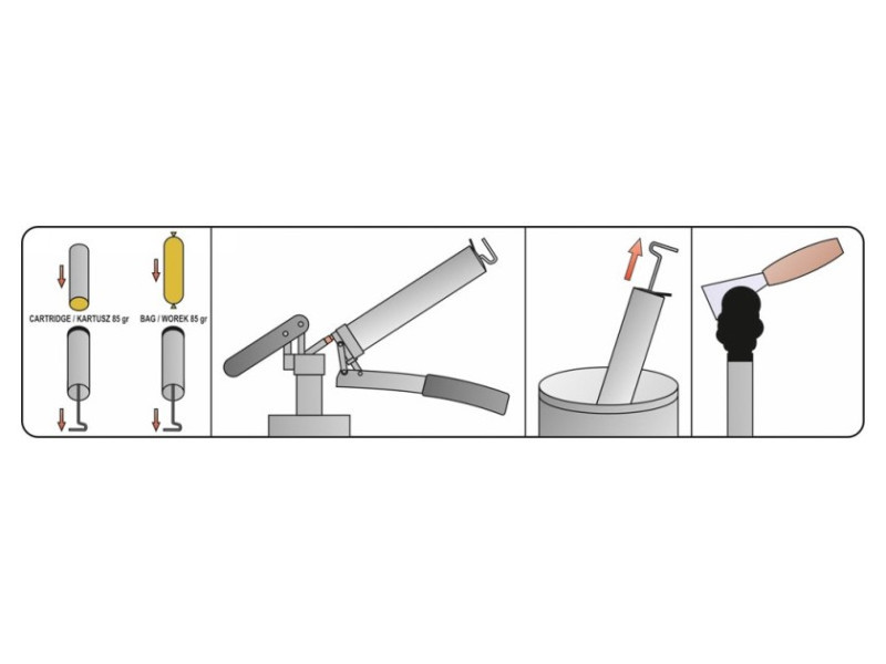 Set includesmanual grease gun, stiff working tip, flexible working tip