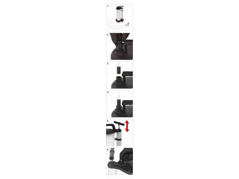 A lightweight, portable suction machine with a manual mechanism. Designed for sucking oil or other operating fluids from external tanks or tanks in machinery and equipment. Recommended for trucks, agricultural machinery, power generators, etc.