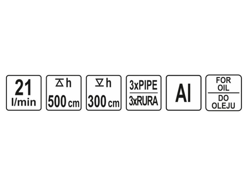 Hand pump for oil. Lightweight compact aluminum construction, capacity 21 liters/minute. Pumping height 5 m, suction depth 3, m.