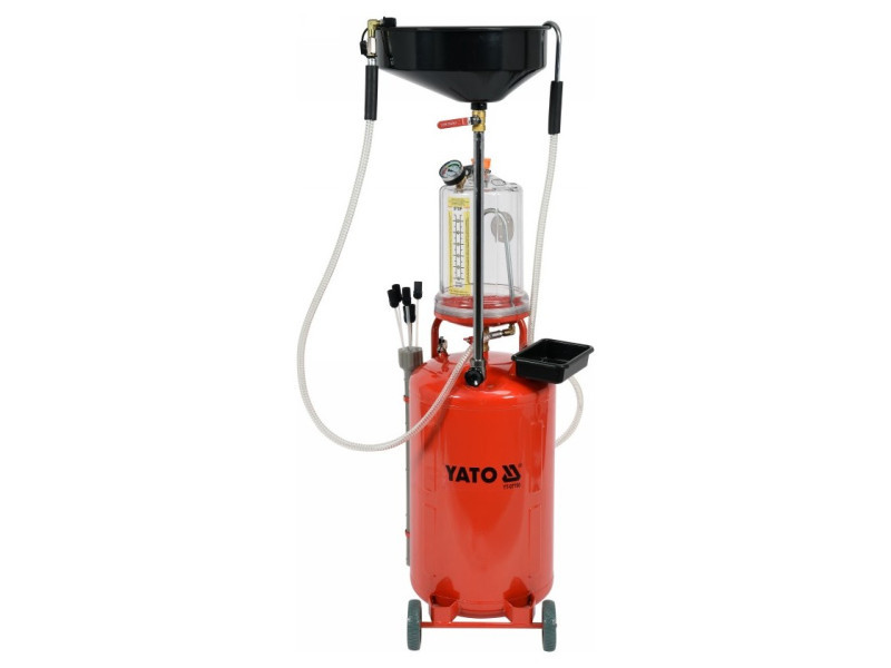 Professional beaker-sucking machine with control tank allows for fast oil drainingós of automobile enginesós and gearboxesós. Used for draining and sucking oil and operating fluids from carsós, motorcycles and agricultural machinery.