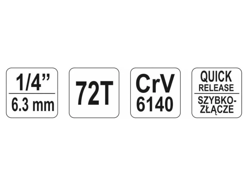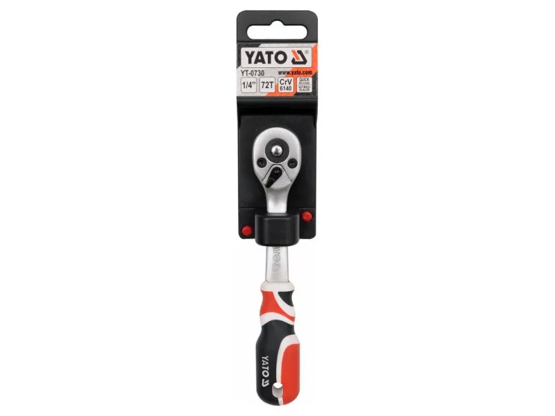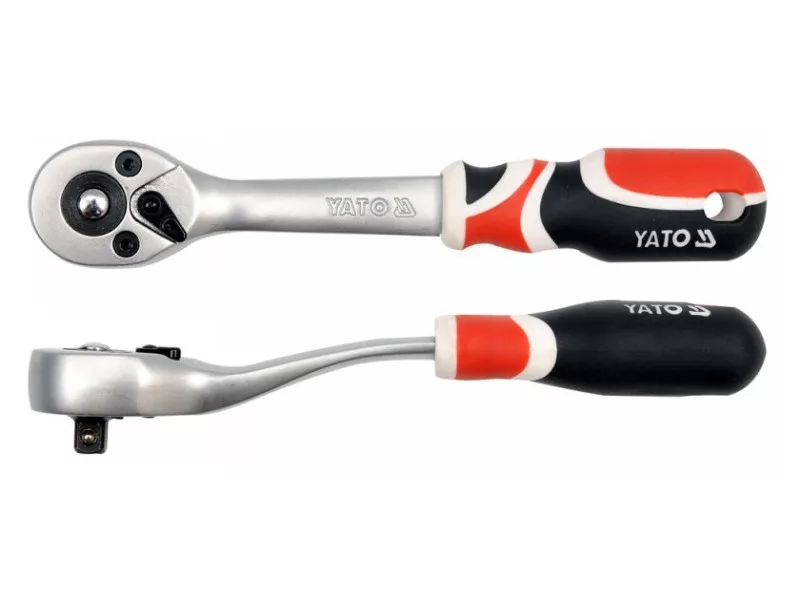 Ratty bent 1/4 '' Yato brand 155mm long. The handle is made of CRV6140 alloy steel. The ratchet is equipped with the Quick Connect system.