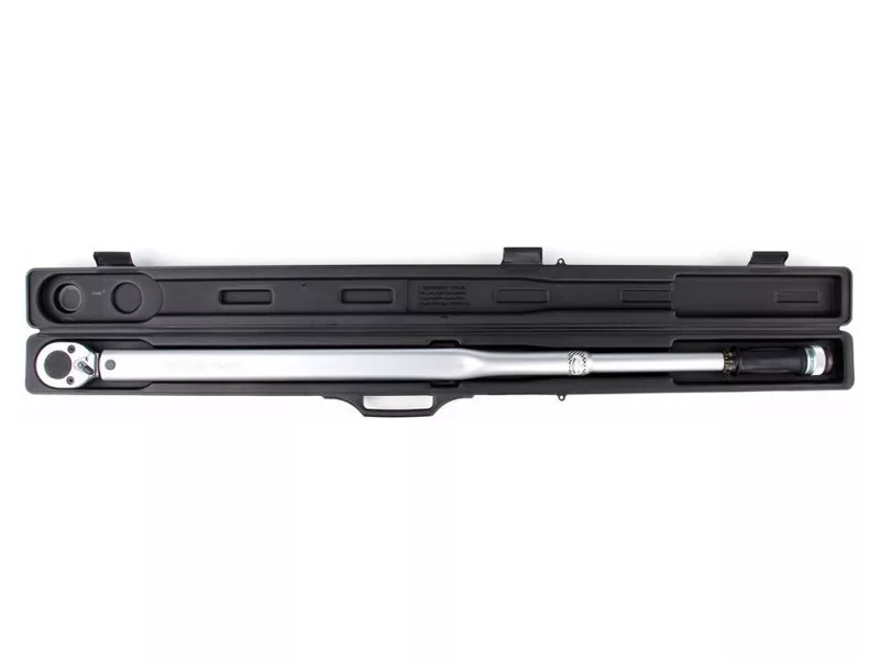 The wrench is made of chrome vanadium steel, which ensures its durability and strength. It has a mechanical tension of the torque pawl, whichóra after reaching the desired tightening force jumps one tooth, making a characteristic sound. The torqueós scale is located in the handle of the wrench, its adjustment is made by turning it. After setting the desired torque, lock the wrench with the safety catch at the end of the handle.The wrench is GS certified.Summary of torqueós in different units of length and force:1 kG*cm = 13.887 OZ*IN (ounce x inch)1 kG*cm = 0.867 LB*IN (pound x inch)1kG*m = 9.80665 N*m (Niuton x meter)1 kG*m = 7.233 LB*FT (pound x foot)1FT*LB = 12 LB*IN (pound x inch)1dm*N = 14.16 OZ*IN (ounce x inch)