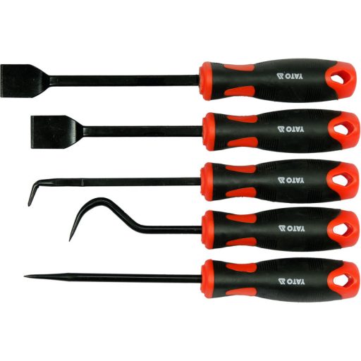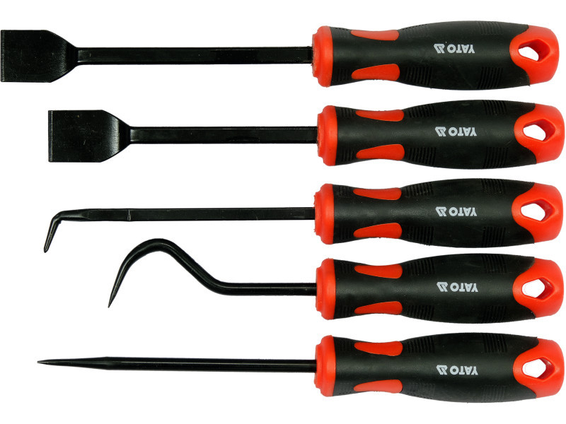 Set of hooksós with handle. The hooks have hardened and chrome-plated blades, made of 40 CR steel. The handles are made of two-component plastic to facilitate a secure grip.