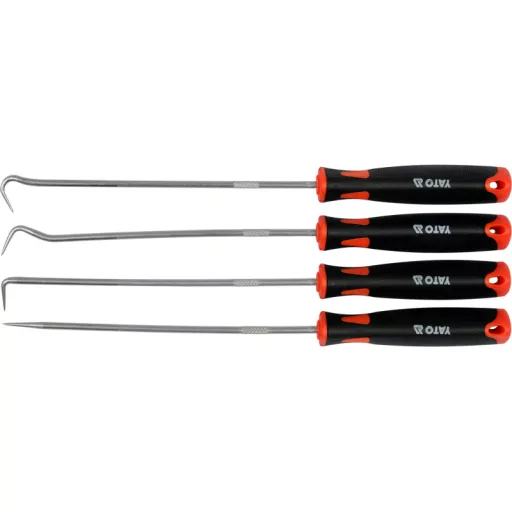 Set of hooksós with handle. The hooks have hardened and chrome-plated blades, made of 40 CR steel. The handles are made of two-component plastic to facilitate a secure grip.