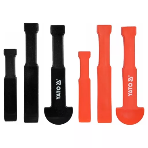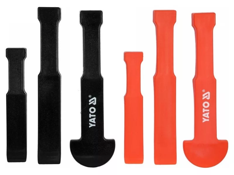 A set of plastic cutters designed for dismantling panels, glued elements, etc. They allow you to separate elements, minimizing the possibility of damage. Flat and round blades profiles, size 127 x 22.2 x 12.7 mm, 175 x 12.7 x 41.25 mm, 175 x 50 x 41, .25 mm. Cutters adapted for light beating with a hammer. Designed for dismantling panels, glued elements, car and furniture upholstery, etc.