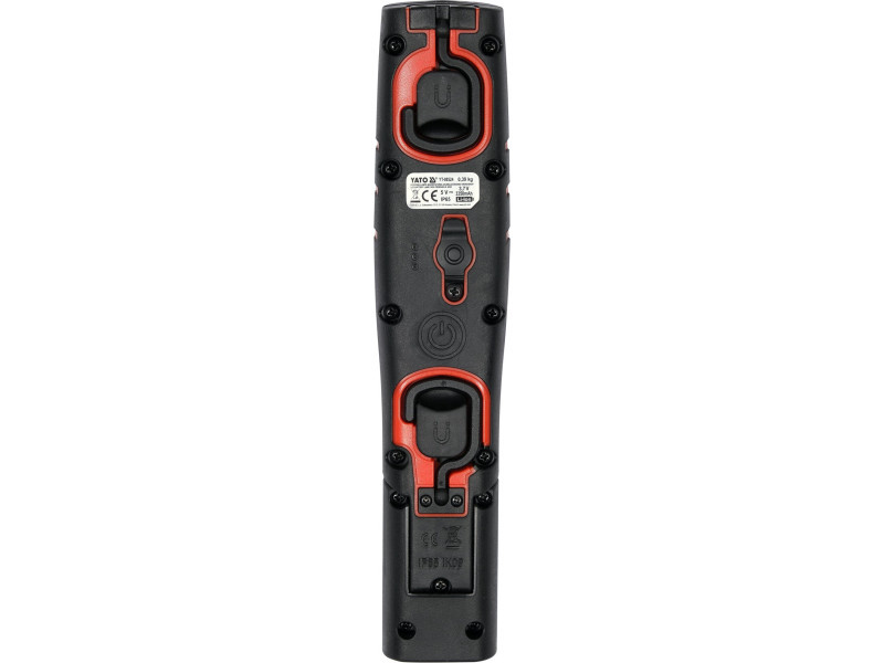 Powerful and durable workshop lamp that works as a floodlight or flashlight. A 180˚ adjustable handle, two suspension hooks and a magnet in the base and back of the lamp make it easy to use conveniently. Four light modes will allow you to select the light output to suit the activity and battery level. In floodlight mode, it emits light output 250/500/1000 lm, in flashlight mode 200 lm. IP65 waterproof class ensures high waterproof and dustproof. Mechanical protection class IK09 means resistance to impacts and falls. The lamp is equipped with a rechargeable lithium-ion battery with a capacity of 3350 mAh, which allows you to work up to 8 h.