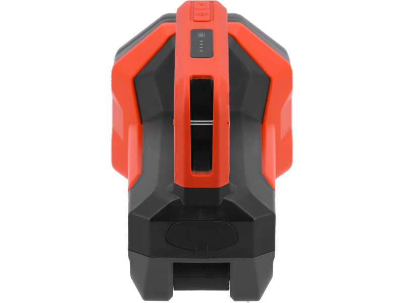 A flashlight that combines the function of a directional searchlight and an adjustable floodlight, for which the flashlight body is the base. The range of the searchlight is 244 m. The searchlight shines with a 600 lm power led, the floodlight with a 1000 lm cob led. The flashlight is powered by a built-in 8,000 mAh battery, which can also be a powerbank. The handle features a 4-stage battery charge indicator.