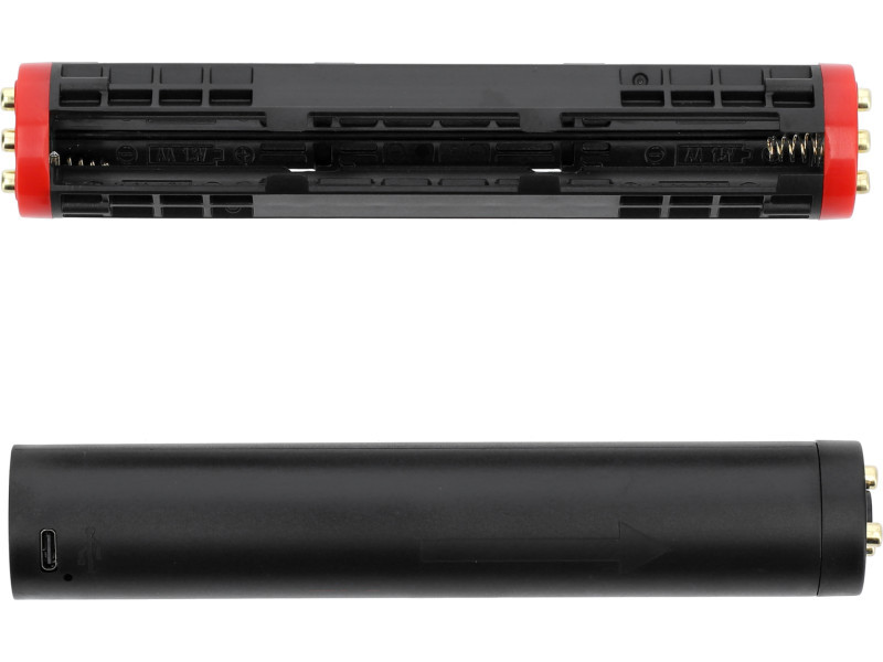 • Possibility of charging the battery outside the flashlight with built-in USB-C port