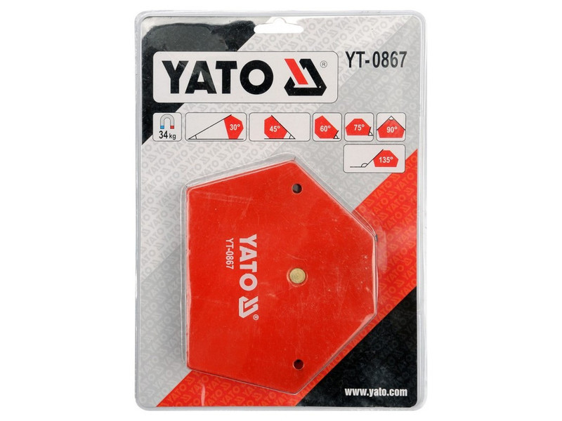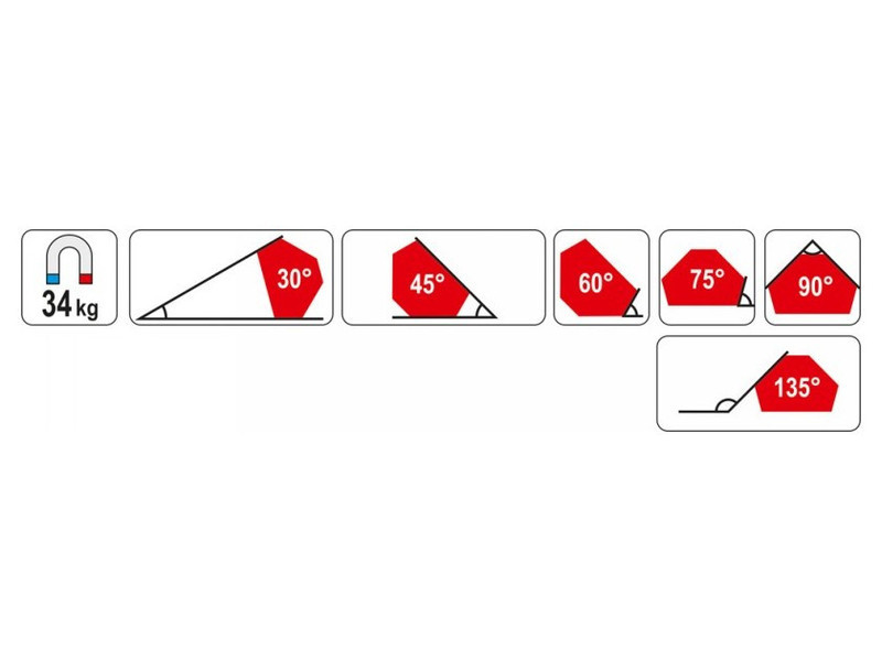Magnetic bevel made of steel sheet and strong ferrite magnets. It allows precise joining of materials at the following angles:
