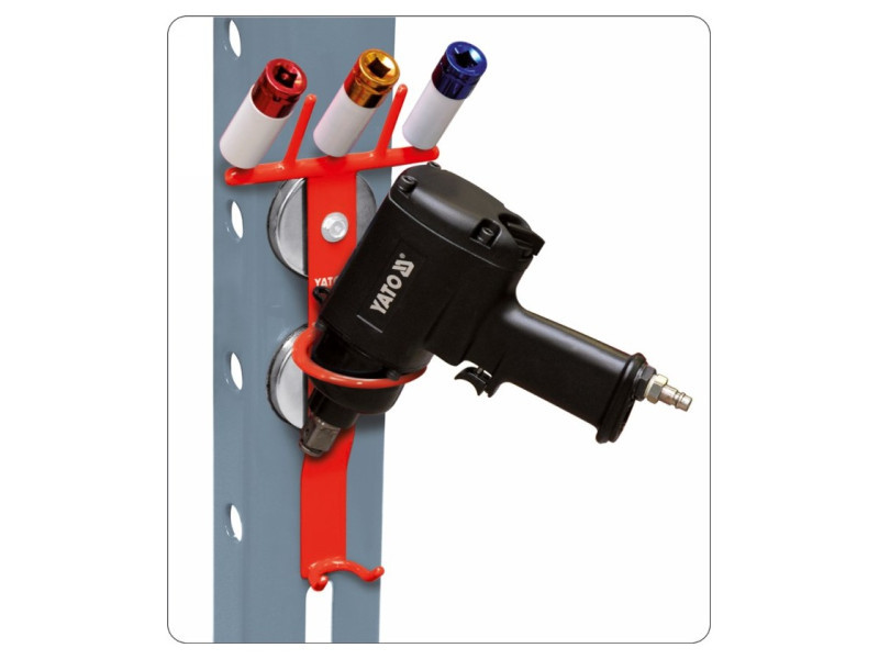 Professional magnetic handle for workshop tools. Thanks to the use of two very strong magnets, this handle can be safely and confidently installed on all metal surfaces. This is a useful solution, especially for column lifts where you cannot drill holes to mount other types of tool handles. The handle has a capacity of up to 15 kg.