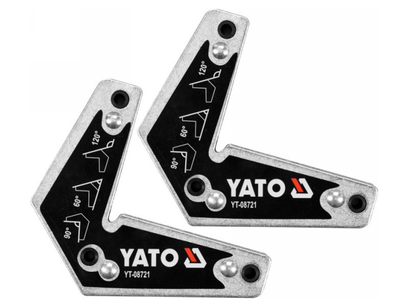 Set of 2 magnetic angle angles YT-08721 used for welding work and angled assembly of various elements sheet metal, fasteners flat bars profiles, pipes etc. Provide a secure hold on welded elementsówith strong magnets.
