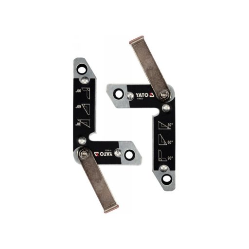 Set of 2 magnetic angleós YT-08723 used for welding work and angle assembly of various elementsós: metal sheets, connectorsós, flat barsós, profiles, pipes, etc. Provide secure holding of welded partsós thanks to strong magnets.