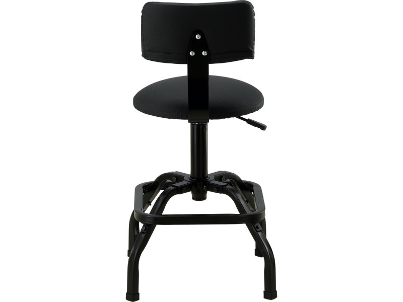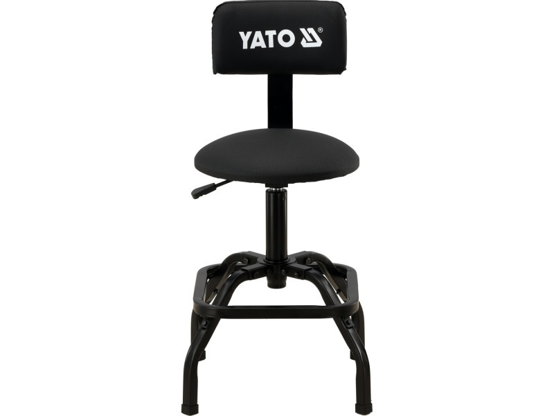 Rotating workshop chair with height adjustment and backrest is a practical addition to the workspace in a garage, service center, or workshop. The 360° swivel seat increases freedom of movement, making it easier to access tools and work items without the need to stand up or reposition the workstation. Height adjustment allows for precise positioning according to the type of task being performed.