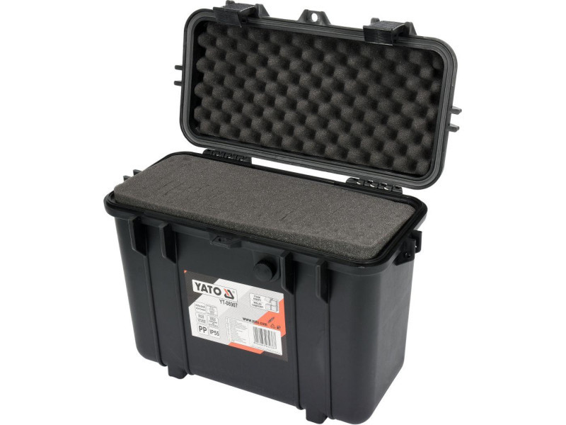 The interior of the case is filled with pre-cut sponge, prepared for self-modeling recesses for specific products such as. tools, photographic equipment or measuring equipment.