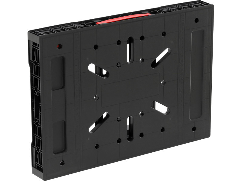 The 852 x 608 mm worktop is made of durable PP material, resistant to impacts and easy to clean. The construction combines metal and plastic, ensuring durability and safety even when loaded with weights up to 650 kg.