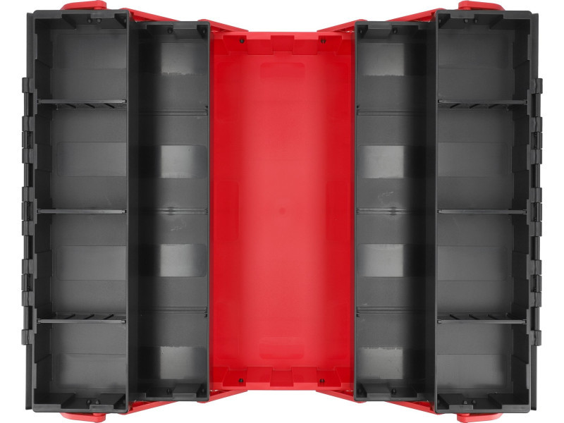 Compact dimensions of 460 x 265 x 208 mm and a convenient handle facilitate storage and transport, making the toolbox a functional equipment for every DIY enthusiast or professional.